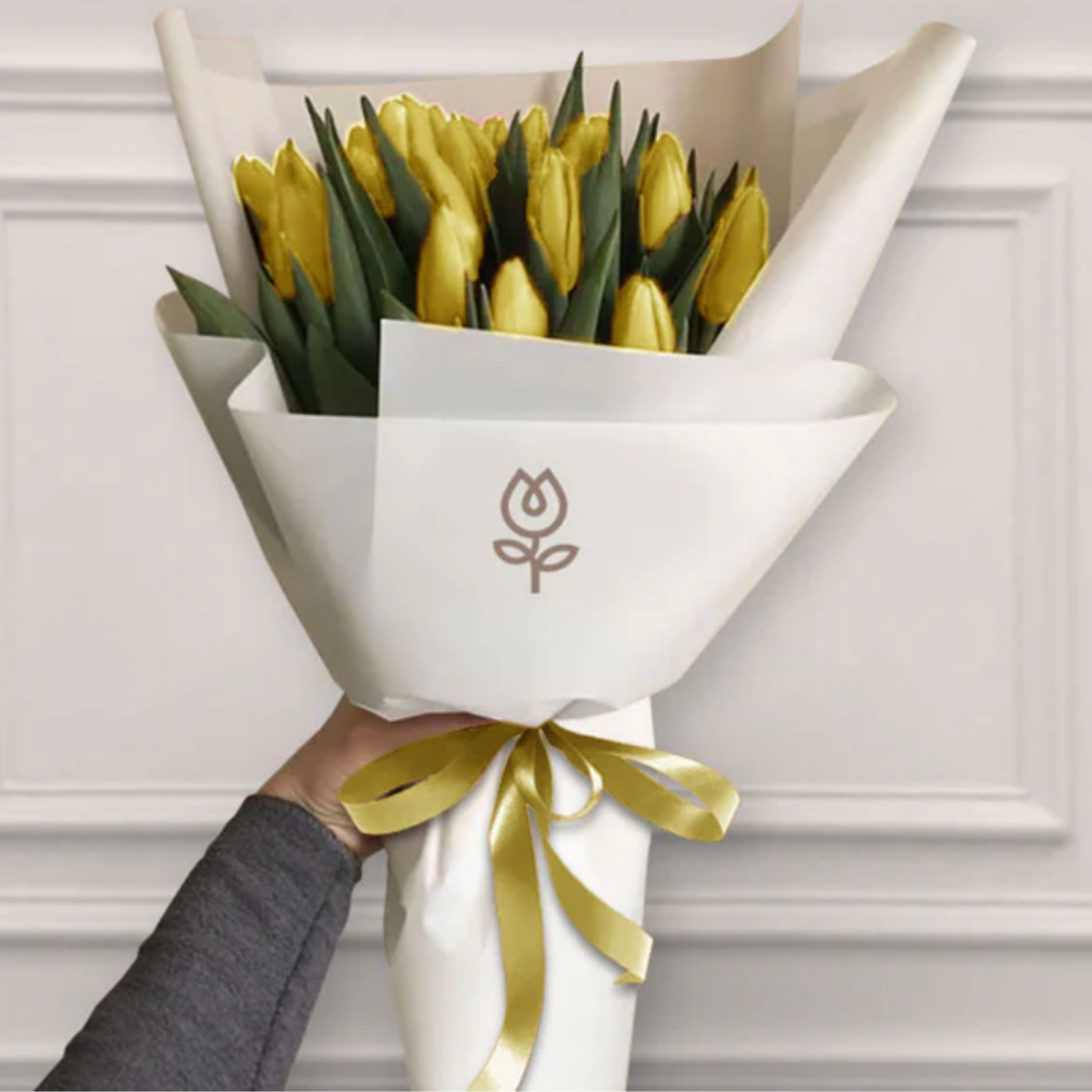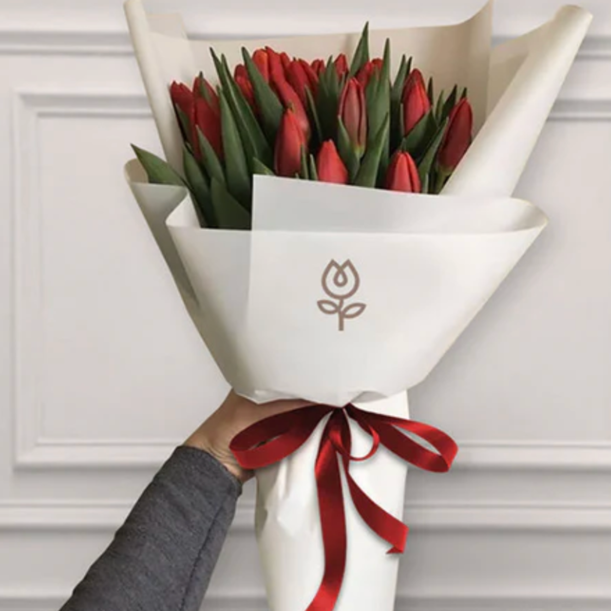 Un deslumbrante ramo de 30 tulipanes rojos envueltos en papel blanco de diseño sofisticado, realzado con un elegante listón negro. Este arreglo combina delicadeza y estilo, perfecto para regalar en ocasiones especiales y dejar una impresión inolvidable.